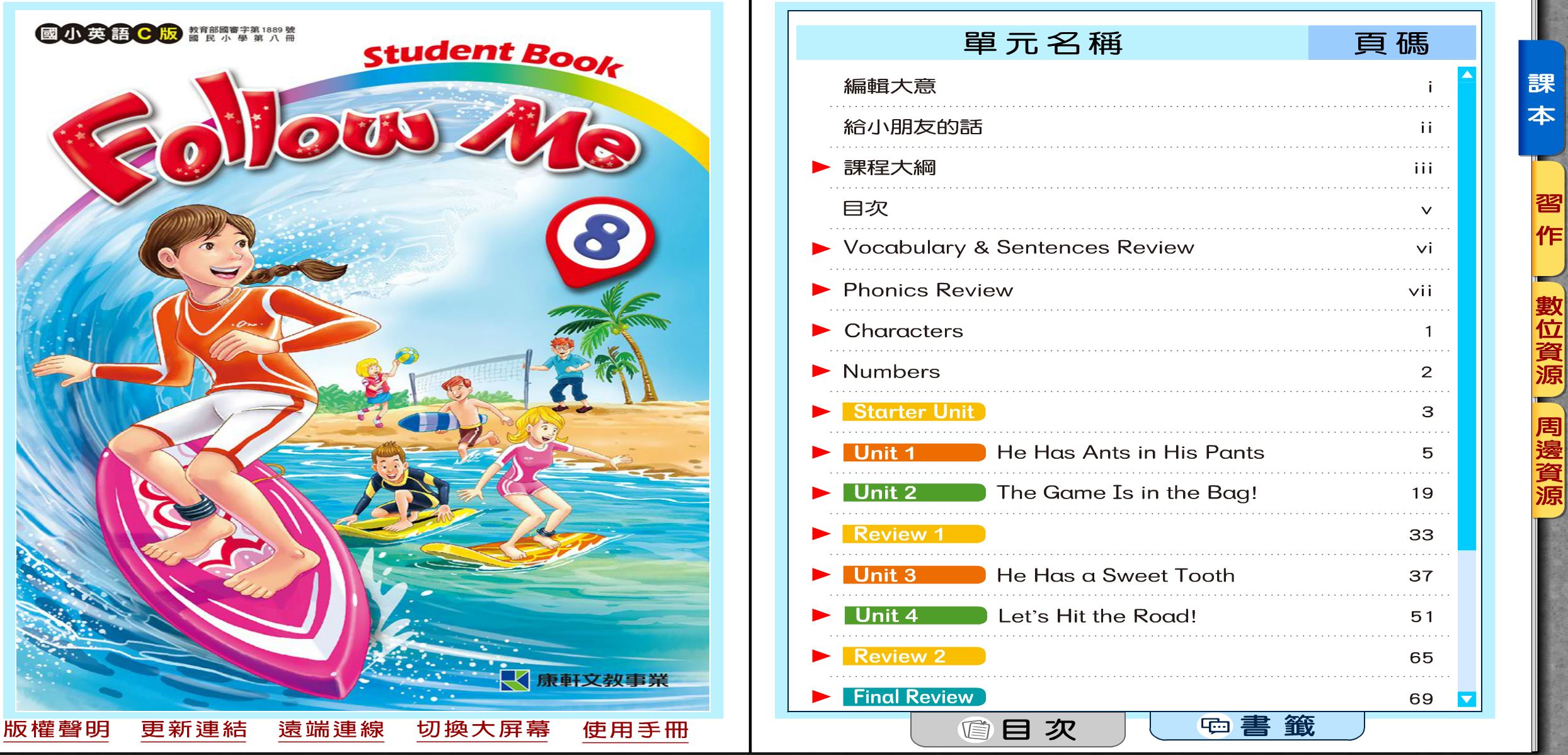 111學年下學期 國小 康軒版 英語電子書 Follow Me 第8冊(含課本、習作含解答) 教學光碟