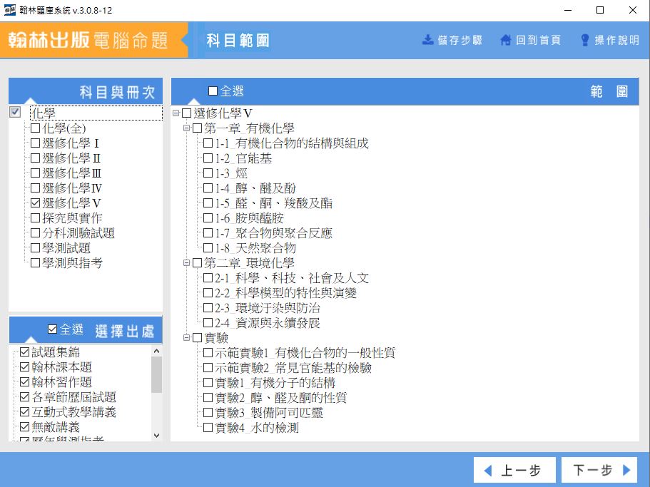 112學年上學期 高中命題光碟 翰林版 化學科(全、選修I、選修II、選修III、選修IV、選修V、探究與實作、分科測驗試題、學測試題、學測與指考)(108課綱) 題庫光碟