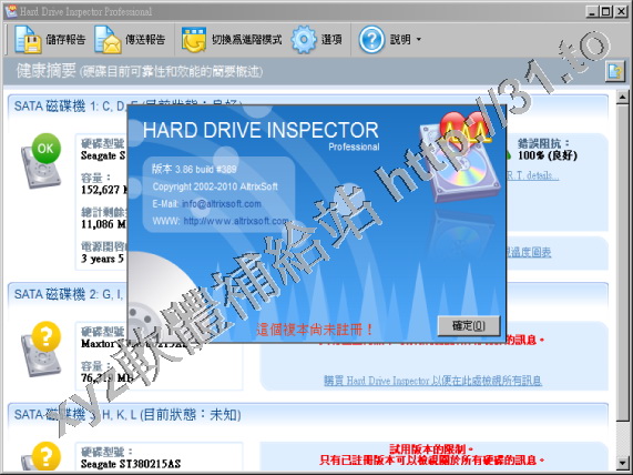 • Hard Drive Inspector Pro v2.100 繁體中文正式版(硬碟監控程式軟體)