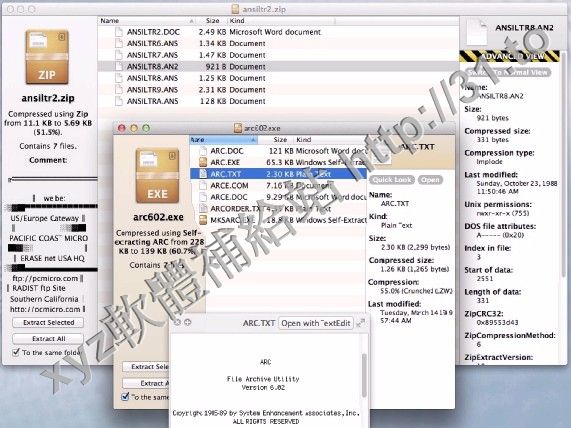 的StuffIt,DiskDoubler,ARJ,LZH和ARC。它也可以處理