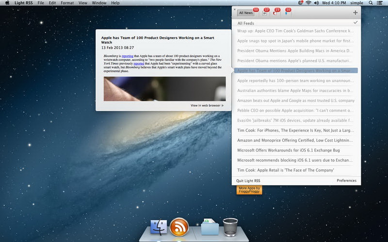 Lightest RSS reader on mac app store.