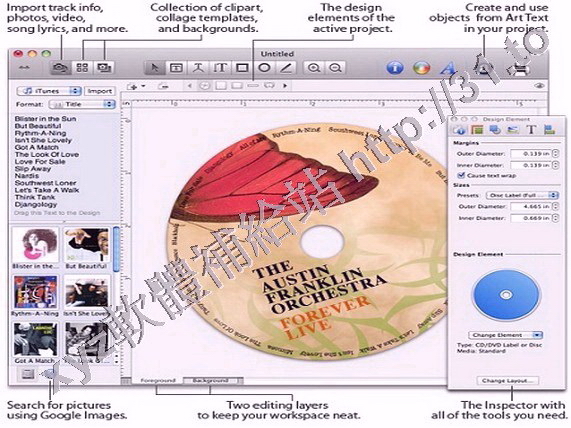 格和圖像工具,可以從itunes,iphoto,Finder,和 DVDi等程式導入數據,或嵌入JPEG,