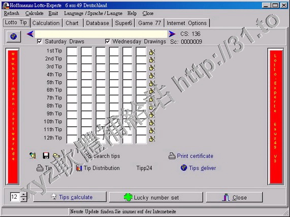 • Hoffmann Lotto-Experte 6 aus 49 v3.2.0.28 英文正式版(彩票選號助手軟體)